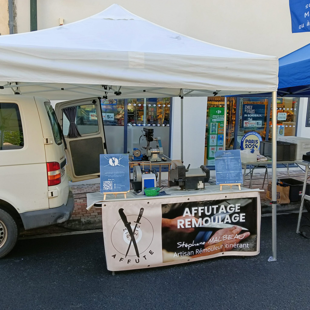 Artisan affuteur rémouleur itinérant, situé à St Médard d’Eyrans près de Bordeaux, je me déplace avec mon atelier mobile sur le secteur du Sud Gironde (33) et du Bassin d’Arcachon.